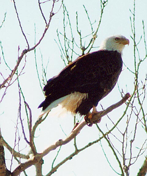 BALD EAGLE HIGH ATOP A TREE ADJACENT TO THE MISSISSIPPI RIVER AT LOCK AND DAM NO. 25 NEAR WINFIELD, MISSOURI
