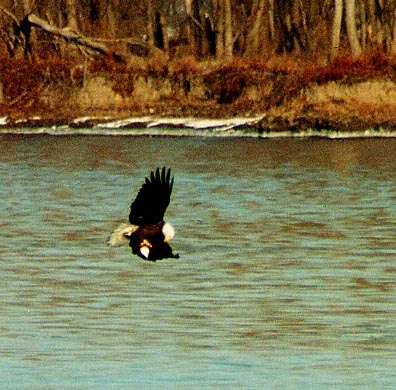 A BALD EAGLE "PICKS UP SOME LUNCH" BELOW LOCK AND DAM NO. 25 NEAR WINFIELD, MISSOURI.